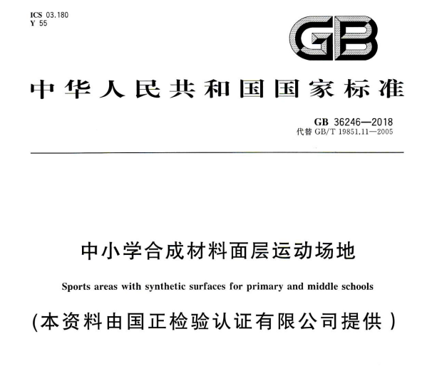 GB 36246-2018中小學合成材料面層運動場地全文 2018年5月14日,全國標準信息公共服務平臺發布塑膠跑道國家強制性新標準GB 36246-2018... 更新日期:2020-05-11