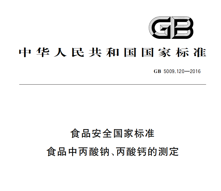 GB 5009120-2016 食品安全國家標準 食品中丙酸鈉、丙酸鈣的測定 更新日期:2023-01-03 下載包(1)