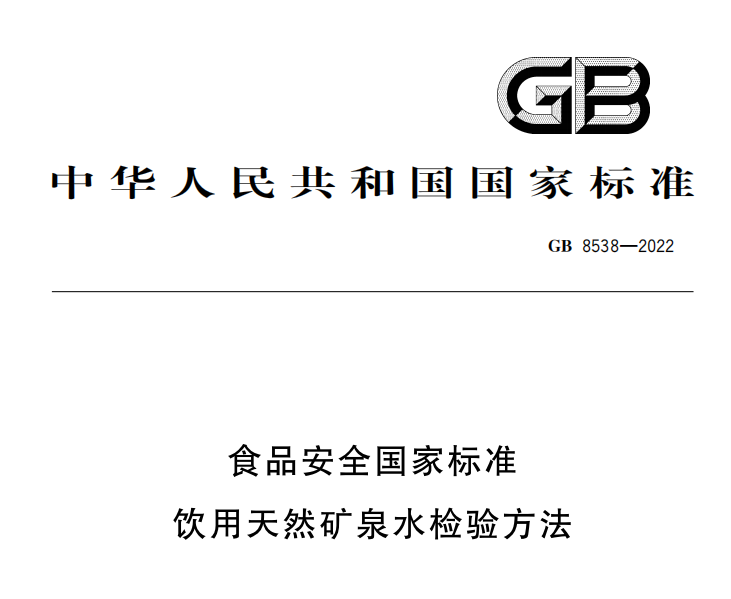 GB 8538-2022食品安全國家標準 飲用天然礦泉水檢驗方法 GB 8538-2022食品安全國家標準 飲用天然礦泉水檢驗方法 更新日期:2023-01-03