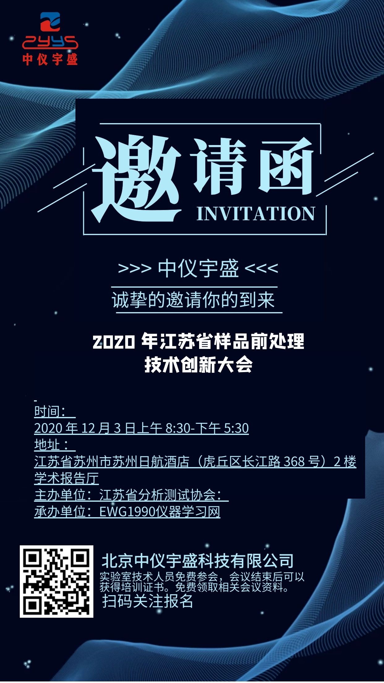 中儀宇盛邀請您參加《2020年江蘇省樣品前處理技術創新大會 》 更新日期:2020-12-02